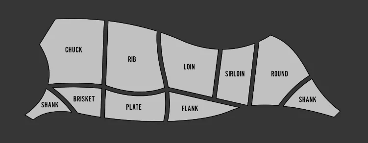 This section of the beef comes from the front half of the animal (shoulder, brisket, rib, and chuck). It’s known for flavorful cuts like chuck roasts, ribeye steaks, brisket, and short ribs, making it great for grilling, smoking, and slow-cooking.